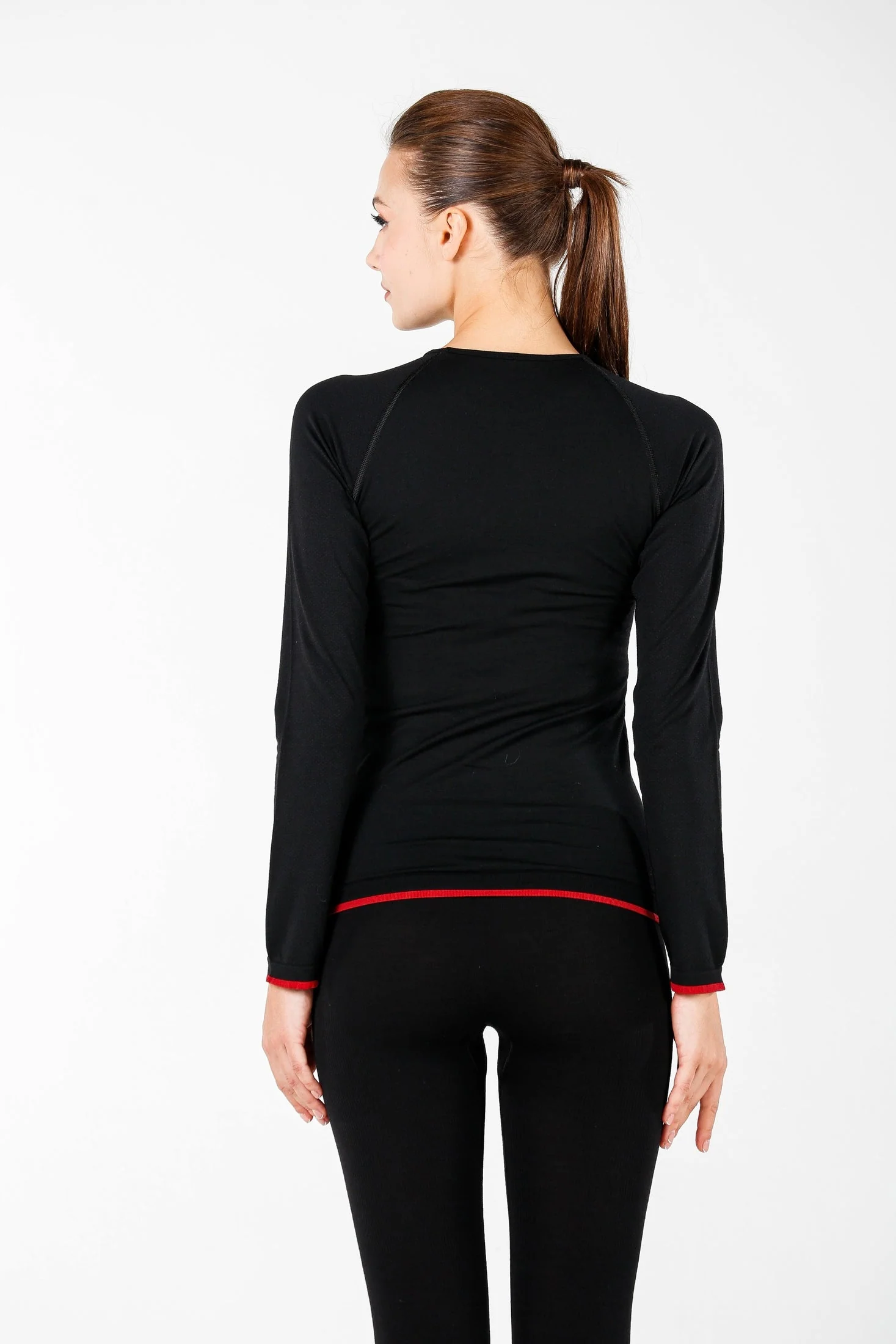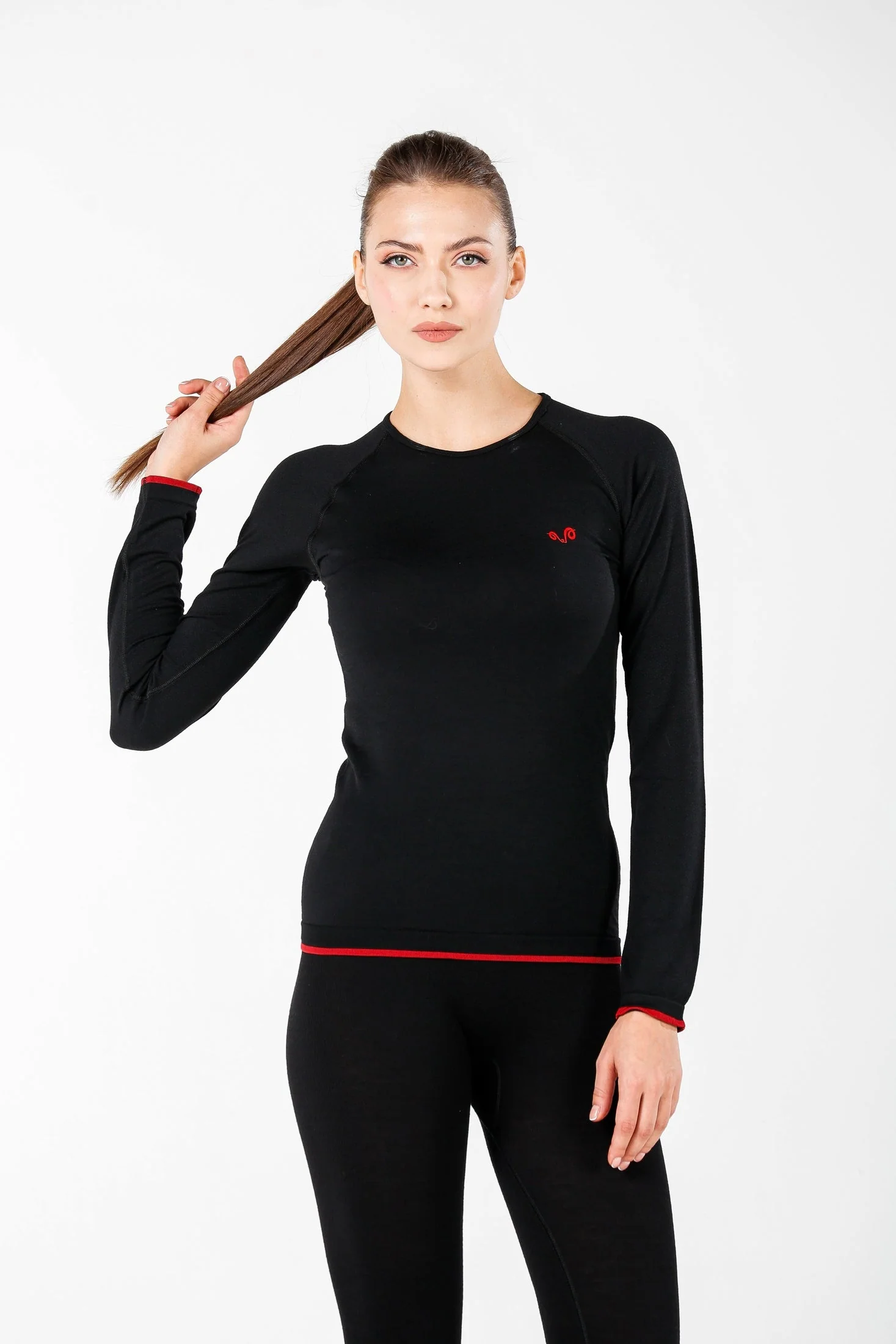 Ένα αθλητικό ρούχο χωρίς ραφές, κατασκευασμένο από 80% μαλλί μερινό, που υπόσχεται έλεγχο οσμών, αντιμικροβιακές ιδιότητες και θερμορύθμιση. Ιδανικός συνδυασμός με κολάν Cappa ή Bianka.