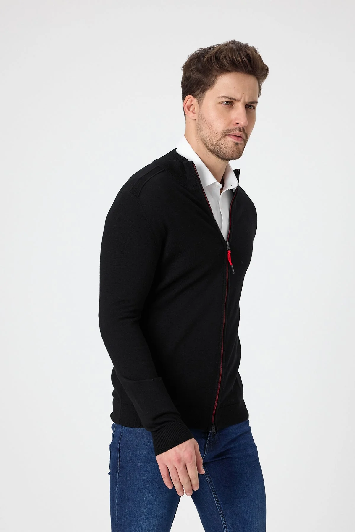 Αυτή η μοντέρνα ανδρική ζακέτα, κατασκευασμένη από 100% μαλλί μερινό, είναι ένας ευέλικτος σύντροφος για κάθε εποχή. Η απαλή, επίπεδη πλέξη και το φερμουάρ διπλής κατεύθυνσης σε όλο το μήκος εξασφαλίζουν εξαιρετική άνεση και βέλτιστη ρύθμιση της θερμοκρασίας. Η φυσική ελαστικότητα του μαλλιού μερινό εγγυάται τέλεια εφαρμογή και ελευθερία κινήσεων.